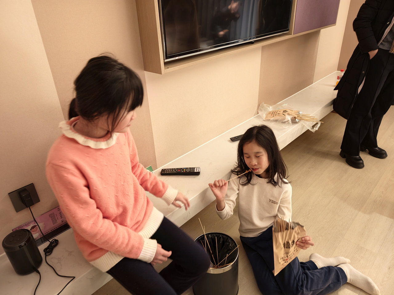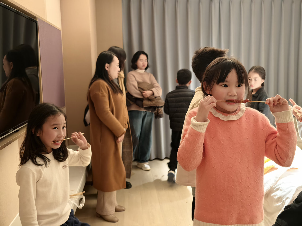 夜宵才是最好吃的,虽然吃了自助餐,但就算是等一个小时也要把夜宵吃了才算一天,孩子们在酒店玩,一会儿看电视,一会儿玩游戏,一会儿要睡觉了,不过他们还是都等到不辣的夜宵(其实最后都吃了辣的)。